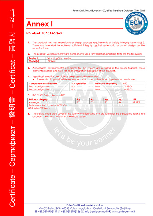 選用產(chǎn)品APX401-RD在線振動式粘度計